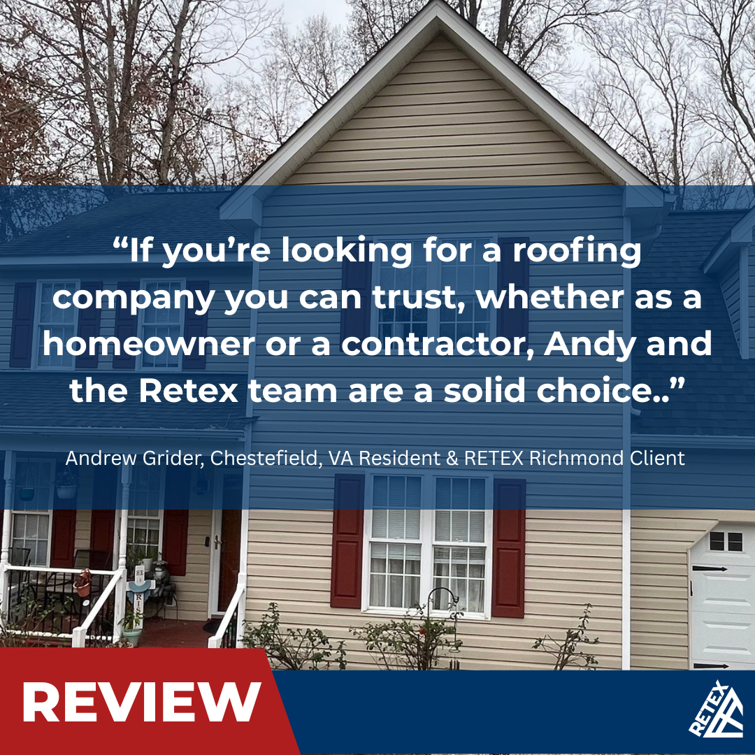 P.S. If you’re a homeowner in Charlottesville, Fredericksburg, or Richmond and you need an estimate for your roof, siding, windows, or gutters, RETEX is the team to call. Reach us at 804-552-6505 to tell us more about your project.