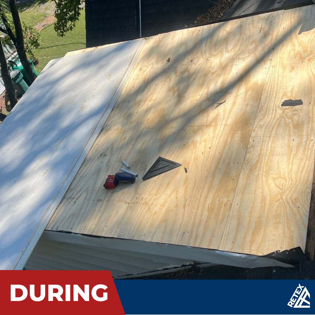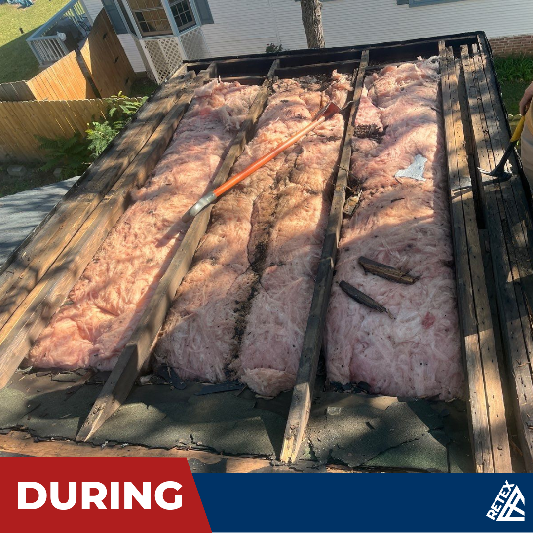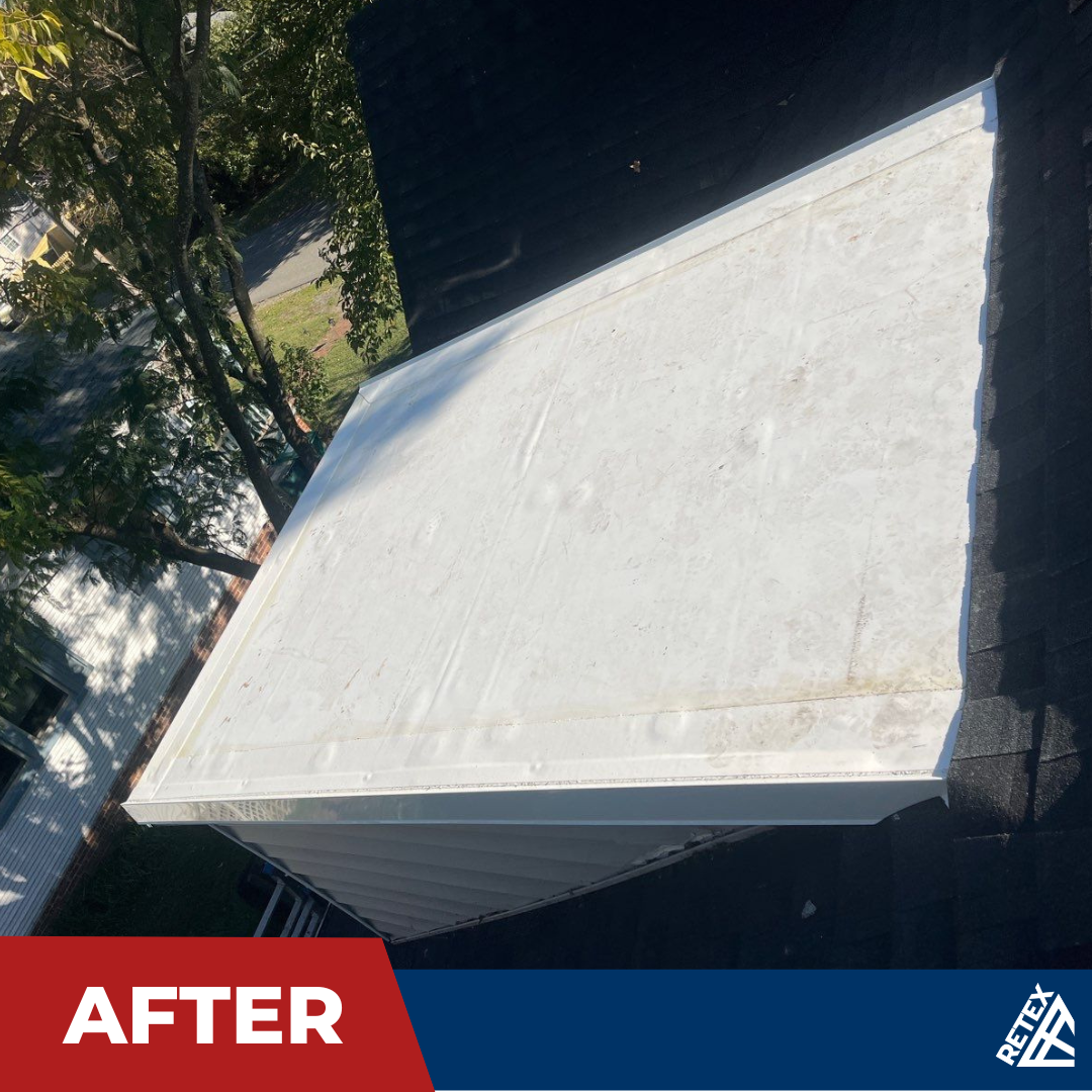 Two weeks later, RETEX’s Repair Team Alpha removed two layers of the old roof and replaced them with a properly installed flat TPO membrane on the low-slope roof.